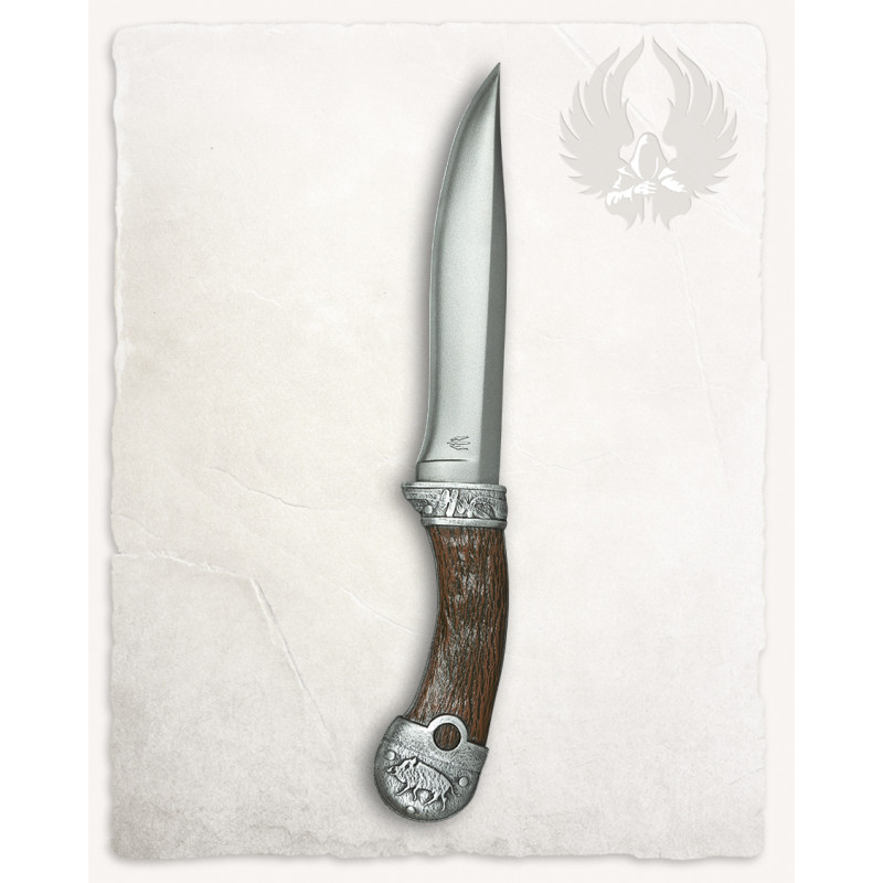 Stworzony przez kanadyjską manufakturę Calimacil we współpracy z CD PROJEKT RED, nóż myśliwski Geralta pochodzi ze świata gry Wiedźmin 3: Dziki Gon – wielokrotnie nagradzanej gry fabularnej akcji. W uniwersum Wiedźmina sztylety służą do pozyskiwania trofeów z pokonanych przeciwników. Ta piankowa replika została wykonana i zaprojektowana na podstawie oryginalnych modeli z gry. Jest wystarczająco miękka, by zapewnić bezpieczeństwo podczas inscenizowanych walk, a jednocześnie na tyle solidna, by idealnie nadawać się do cosplayu i jako rekwizyt.