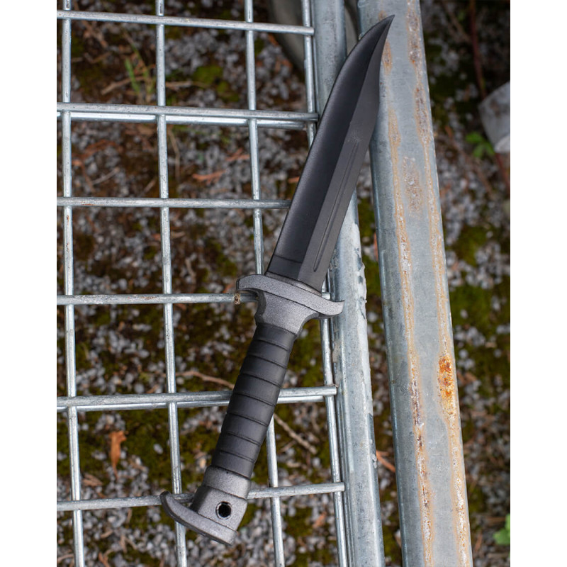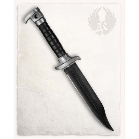 Ten nóż LARP należy do kategorii noży do rzucania. Wykonany z bezpiecznej pianki Calimacil, jest idealnie przystosowany do ataków rzucanych, ponieważ nie posiada rdzenia. Może się wyginać i pozostaje bezpieczny zarówno w walce w zwarciu, jak i na dystans. Rękojeść jest czarno-srebrna, a ostrze ma kolor stali. Krawędź noża jest dodatkowo obramowana srebrem, dla większego realizmu.