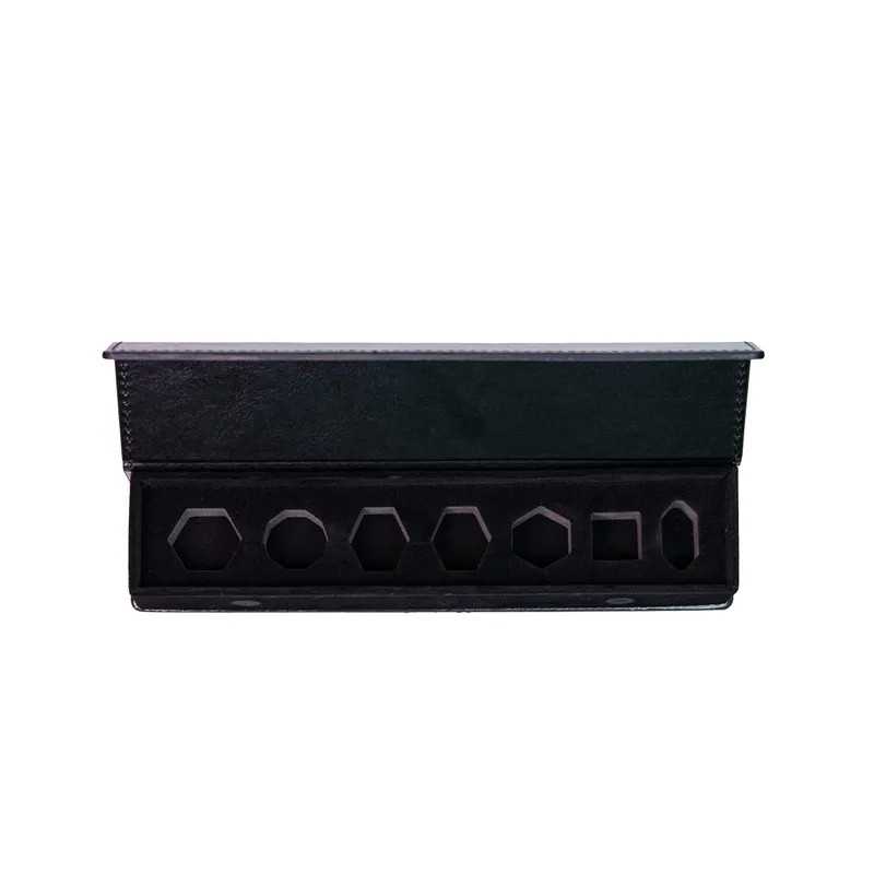 • Eleganckie etui wykonane ze sztucznej skóry, na klasyczny zestaw kości RPG. W środku znajduje się specjalna wytłoczka.