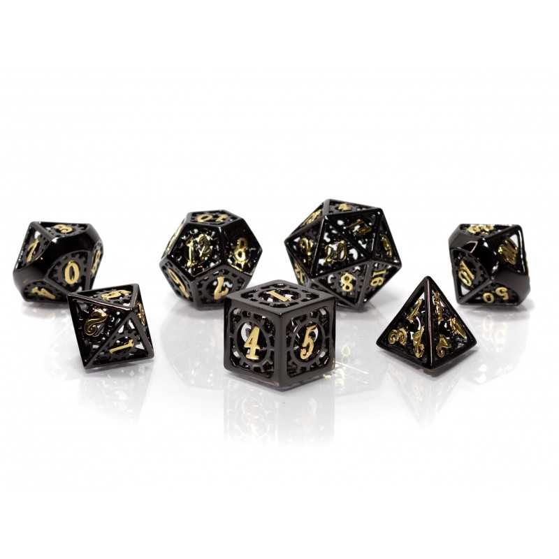 • Zestaw 7 kości wykonanych ze stopu metali. Idealnie nadają się do każdego systemu i dla każdego gracza.