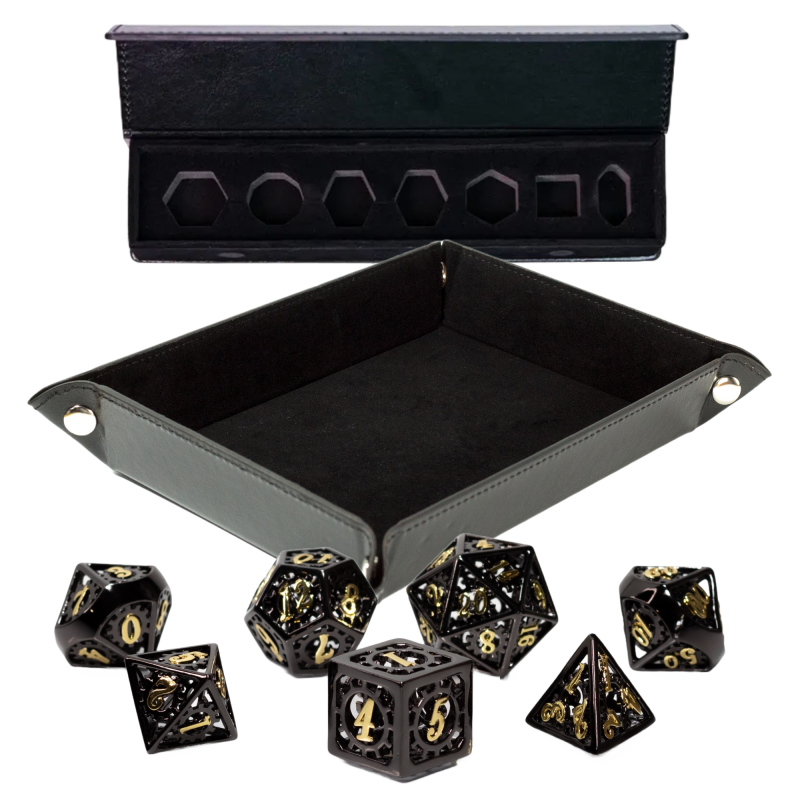 Wybierz komplet kości z tacką do rzucania, aksamitnym woreczkiem pod kolor, monetami, albo zmywalną matą. Obdaruj kogoś zestawem nietypowych kostek, które świecą w ciemności lub całym niezbędnikiem gadżetów RPG – w sam raz dla początkującego i zaawansowanego gracza!