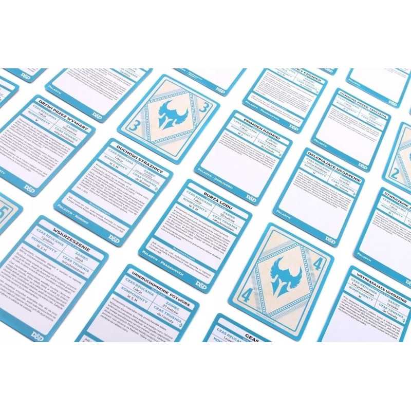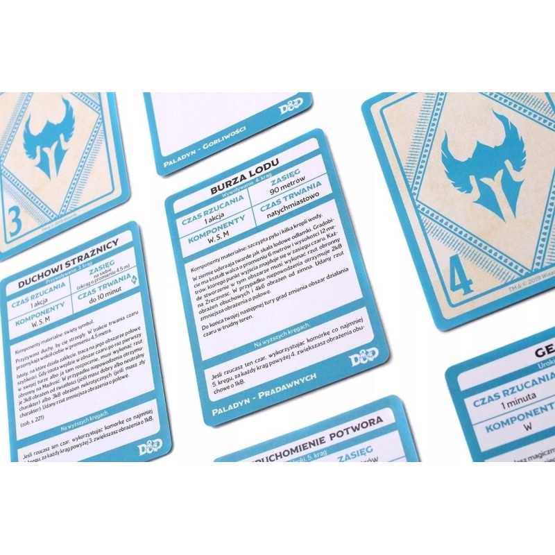 Dungeons & Dragons to prosty, ale głęboki w swojej strukturze system, którego skumulowane w grubych podręcznikach możliwości odkrywa się stopniowo. Swoją przygodę polecamy rozpoczynać od Dungeons & Dragons: Starter Set (Zestaw Startowy), który zawiera wszystko, czego potrzebujesz , aby przez długie miesiące zapoznawać się z ogromem możliwości, jakie dają gry fabularne. W jego skład wchodzą zasady dla początkujących, kości, karty postaci oraz przygoda, która uznawana jest za jedną z najlepiej skrojonych na tę okoliczność. Karty Zaklęć do piątej edycji D&D to nieoceniona pomoc zarówno dla graczy jak i Mistrza Podziemi. Intuicyjnie, szybko i skutecznie wykorzystaj kartę odpowiedniego zaklęcia zamiast poszukiwać odpowiedzi dotyczącej zasięgu, obrażeń czy komponentów pośród wielu stron Podręcznika Gracza. Zestaw tych 70 kart ułatwi życie każdemu paladynowi. Dzięki nim możliwy jest szybki dostęp do zaklęć, którymi postać umie się posługiwać. Nie ma już potrzeby wkładania, nie wiadomo ilu zakładek. Wystarczy tylko ułożyć przed sobą lub trzymać w ręku cały swój arsenał zaklęć