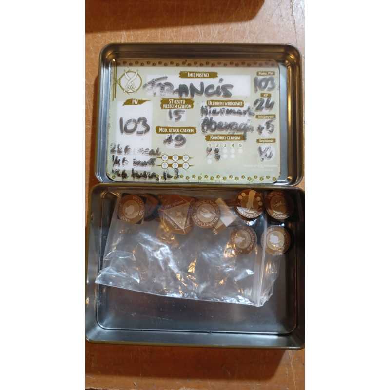 Planszetka pozwoli Ci na notowanie najczęściej zmieniających się danych bez konieczności nanoszenia zmian na karcie postaci, a puszkę możesz podpisać imieniem swojego bohatera.