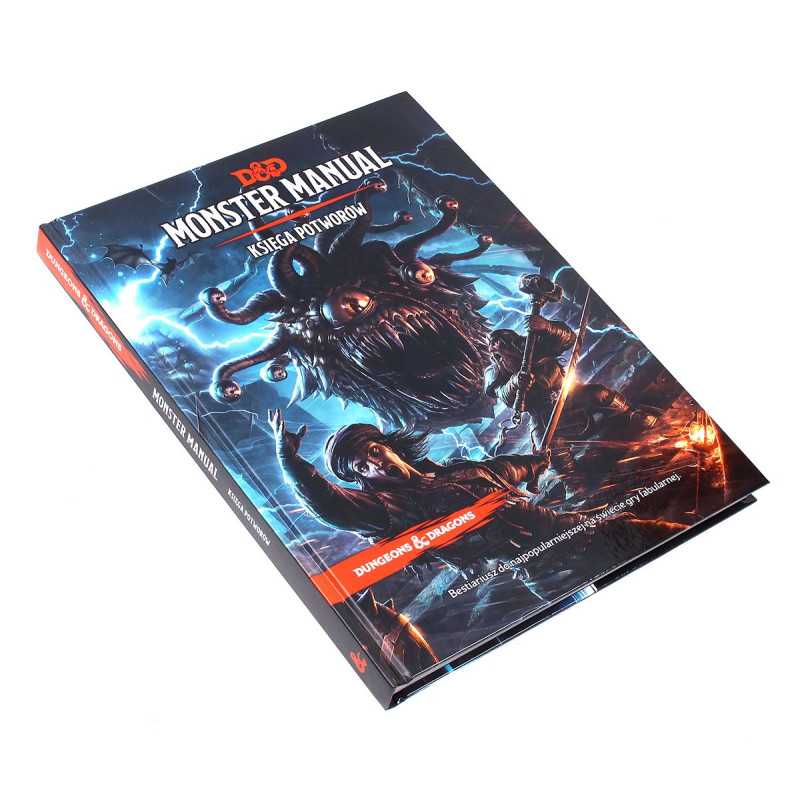 Monster Manual (Księga Potworów) przedstawia mrowie klasycznych stworzeń z Dungeons & Dragons, między innymi smoków, gigantów, łupieżców umysłu i obserwatorów. To prawdziwa potworna uczta dla Mistrzów Podziemi gotowych stawiać przed swoimi graczami nowe wzywania. Zawarte w księdze potwory zostały wybrane ze wspaniałej historii D&D i opisane przystępnymi statystykami oraz fascynującymi opowieściami, które pobudzą twoją wyobraźnię.