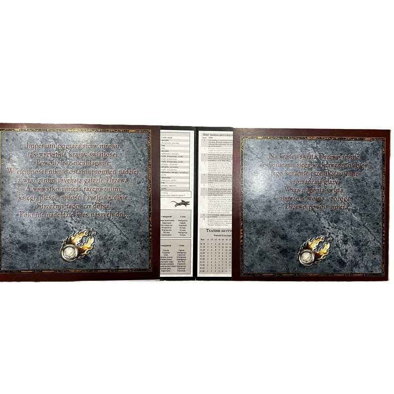 • Ekran Mistrza Gry z ponad 20 najważniejszymi tabelami przydatnymi podczas prowadzenia rozgrywki i wspaniałą ilustracją Geoffa Taylora.