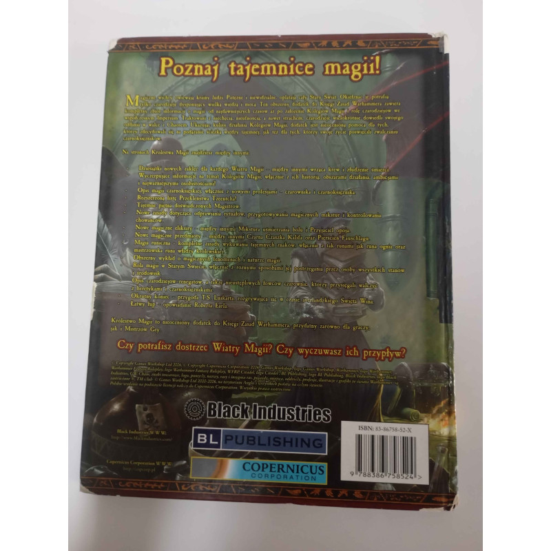 Królestwo Magii to nieoceniony dodatek do Księgi Zasad Warhammera, przydatny zarówno dla graczy jak i Mistrzów Gry. Nowe wydanie to miękka oprawa i czarno-biały środek.