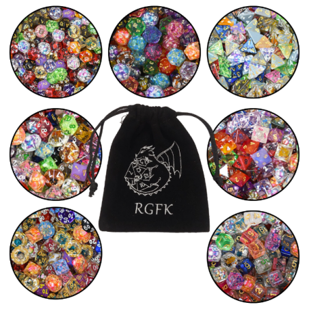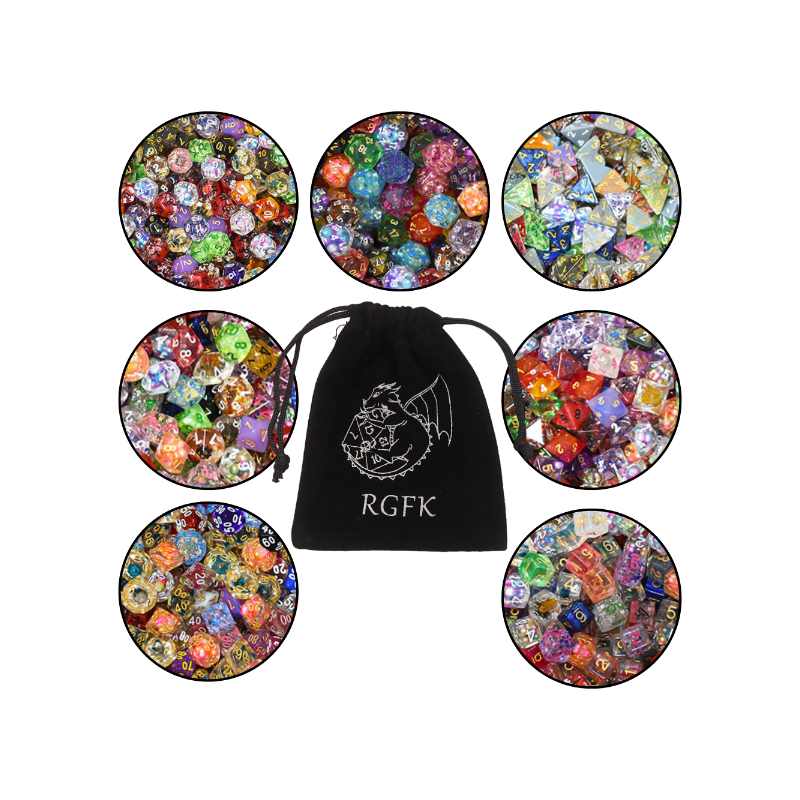 Wybierz komplet kości z tacką do rzucania, aksamitnym woreczkiem pod kolor, monetami, albo zmywalną matą. Obdaruj kogoś zestawem nietypowych kostek, które świecą w ciemności lub całym niezbędnikiem gadżetów RPG – w sam raz dla początkującego i zaawansowanego gracza!
