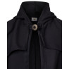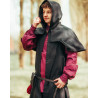 Kołnierz w stylu peleryny przeciwdeszczowej jest wyposażony w kaptur. Peleryna zapinana jest na pojedynczy guzik przy szyi.