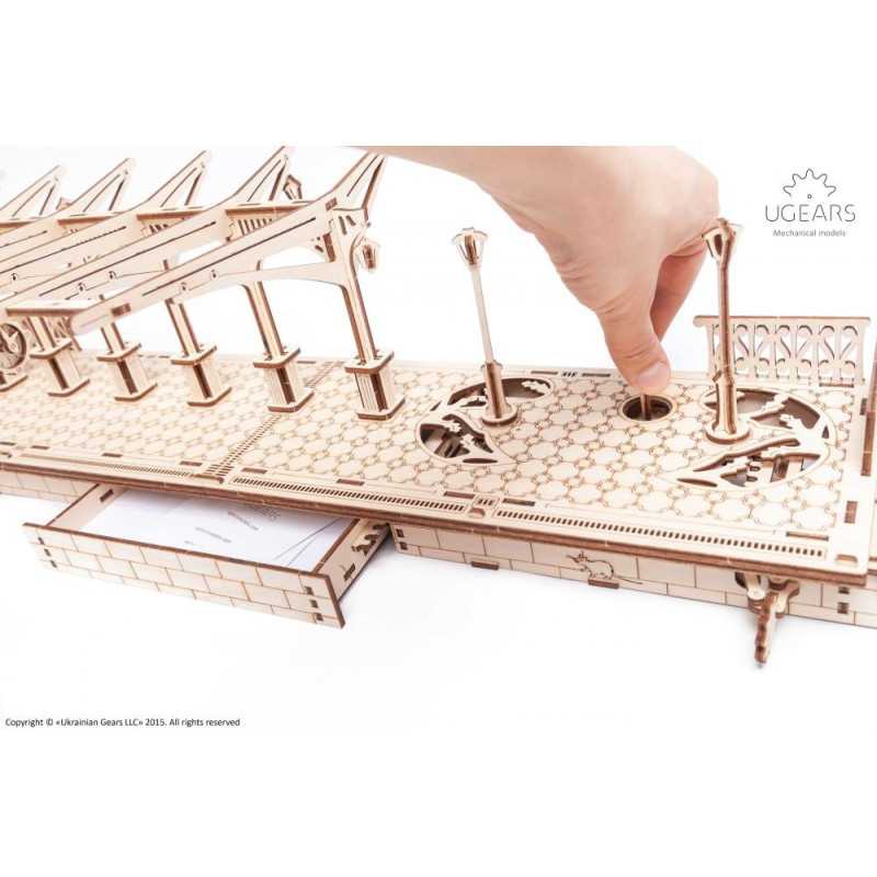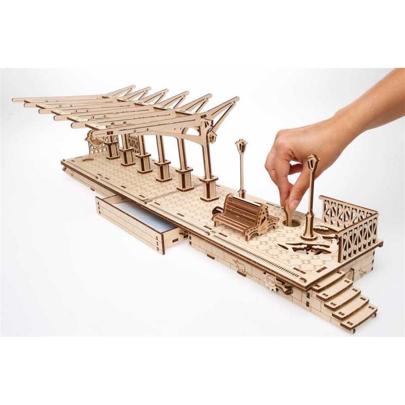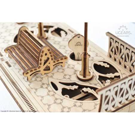 Stylowy i oryginalny design modelu zachwyci inżynierów amatorów w każdym wieku. Oprócz zegara, latarni i ławki, model ten posiada tajną szufladę z zamkiem i kluczem, w której można przechowywać prawdziwe bilety kolejowe.