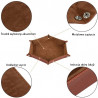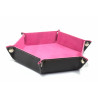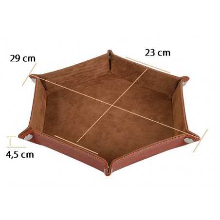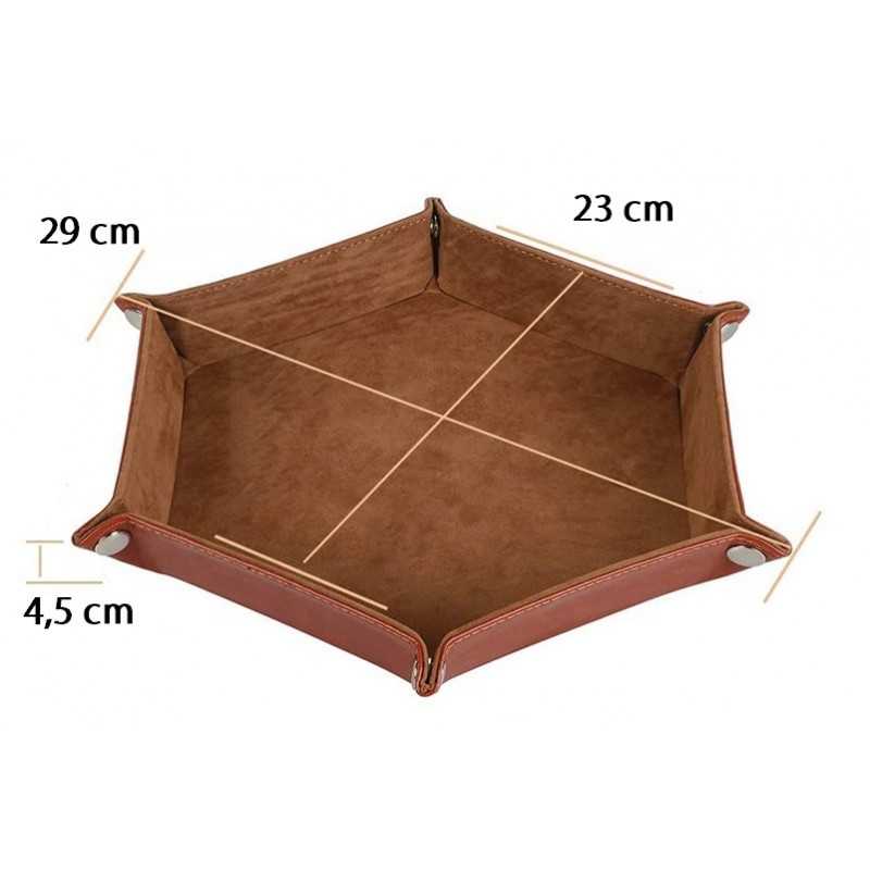 • Dice tray 23 cm wykonany ze skóry i aksamitu. Doskonały wybór aby utrzymać kostki w jednym miejscu i wygłuszyć dźwięk ich toczenia się. Dice tray jest wykonany ze skóry, a w środku wyłożony aksamitem. W narożnikach znajdują się wytrzymałe, metalowe napy dzięki którym możemy płaską matę zmienić w miseczkę do rzucania kośćmi. Materiał: Skaj