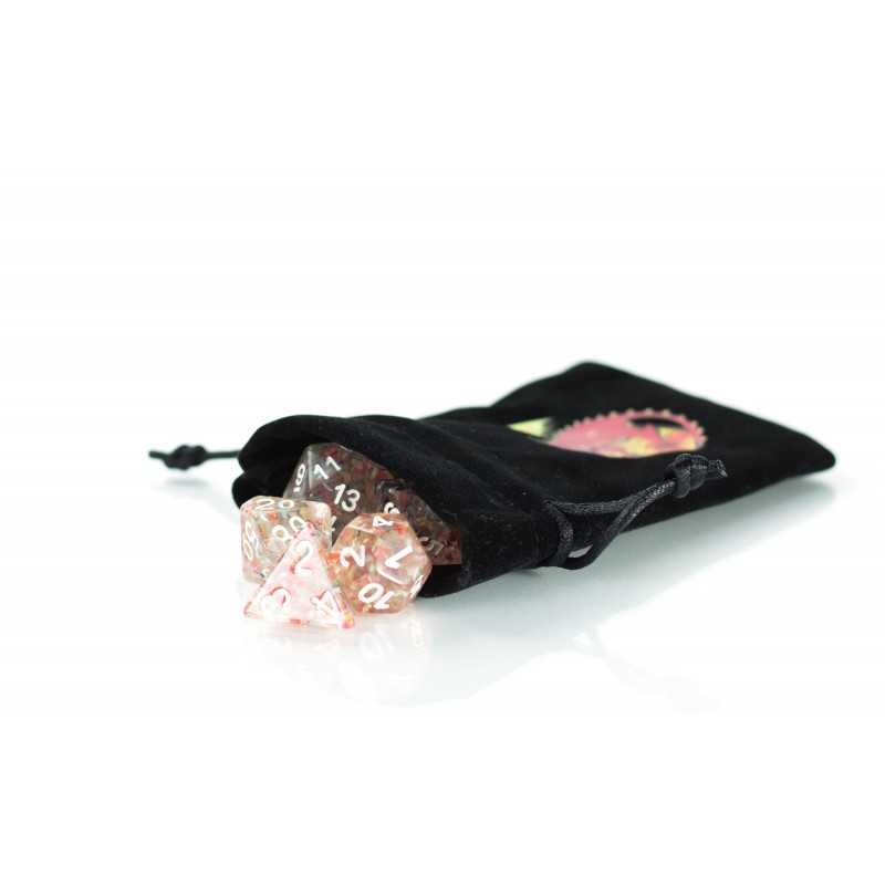 • Piękny aksamitny woreczek 10x15 cm, w którym bezpiecznie przechowasz swoje zestawy kości lub monety!