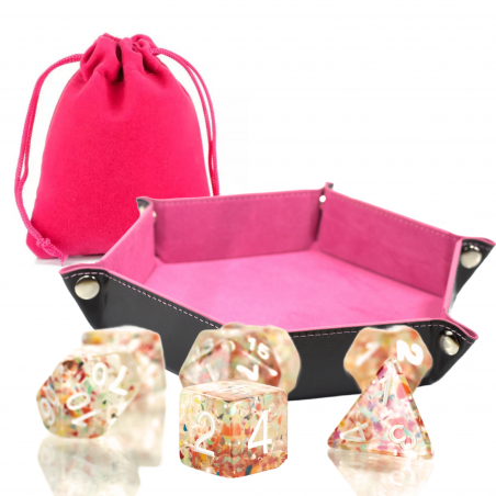 Wybierz komplet kości z tacką do rzucania, aksamitnym woreczkiem pod kolor, monetami, albo zmywalną matą. Obdaruj kogoś zestawem nietypowych kostek, które świecą w ciemności lub całym niezbędnikiem gadżetów RPG – w sam raz dla początkującego i zaawansowanego gracza!