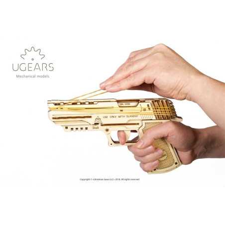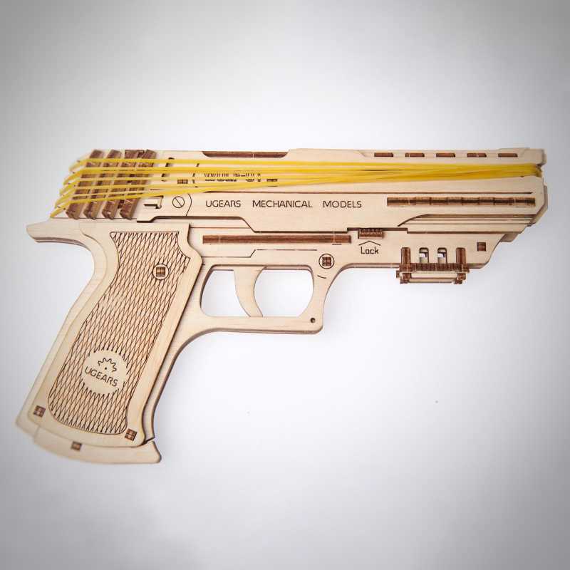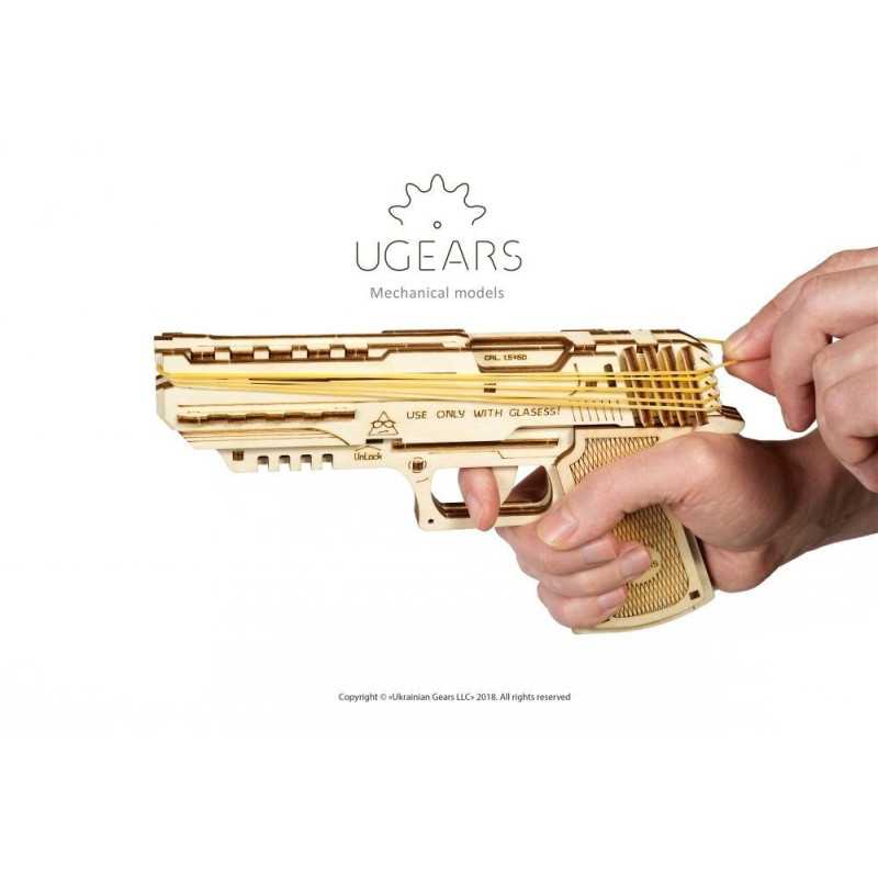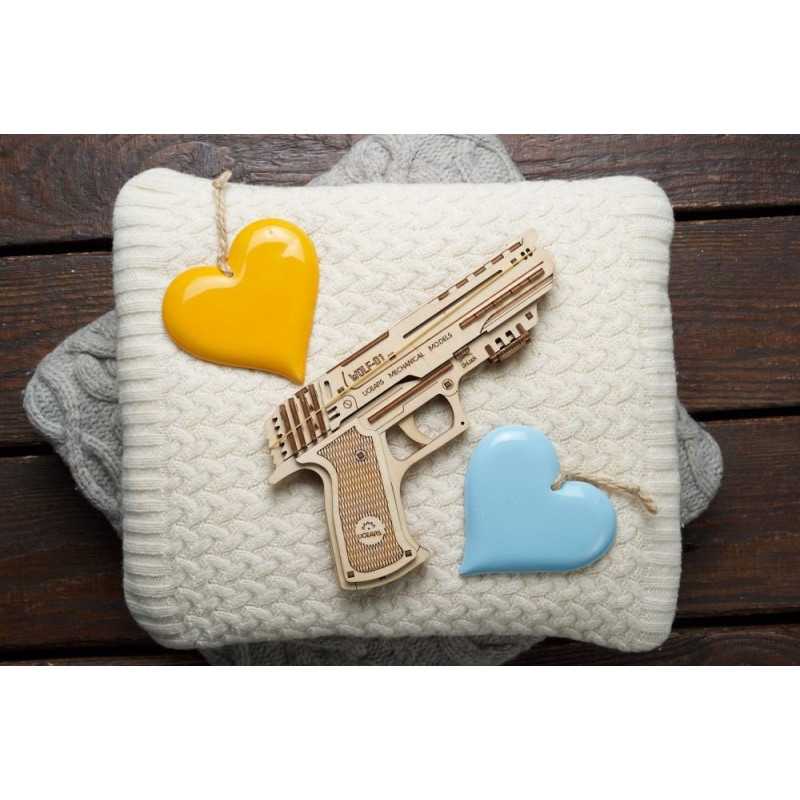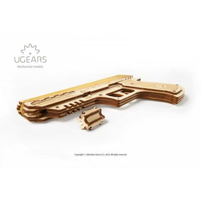 UGEARS reprezentuje unikalne uzupełnienie Twojej kolekcji drewnianych puzzli 3D – załadowany świetnym nastrojem, celujący w zabawę mechaniczny pistolet Wolf-01.