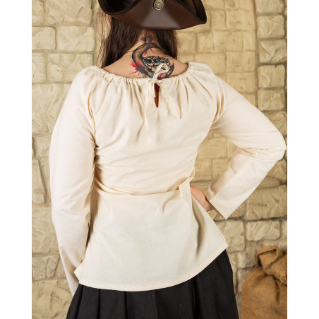 W połączeniu z gorsetem i spódnicą tworzy prostą, ale elegancką sukienkę na średniowieczne jarmarki.
