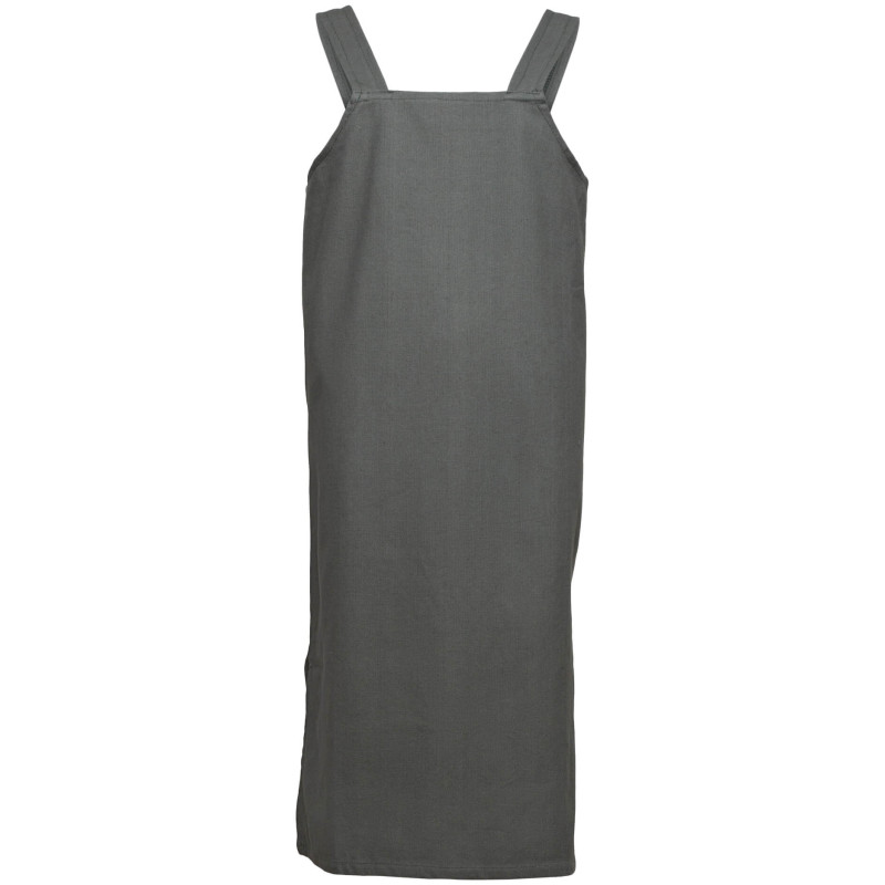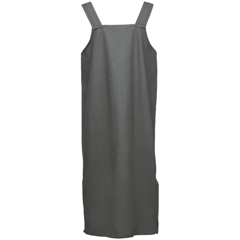Ta prosta sukienka fartuchowa wykonana z bawełnianego canvasu jest krojona na prosto, wzorując się na historycznych pierwowzorach, dostępna w sześciu różnych kolorach.