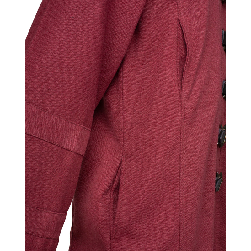 Stójka oraz aplikacje na szerokich rękawach nadają szacie oficjalny, mundurowy charakter.