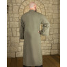 Stójka oraz aplikacje na szerokich rękawach nadają szacie oficjalny, mundurowy charakter.