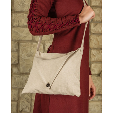 Zapinana jest na guzik z przodu i noszona na pasku przez ramię.