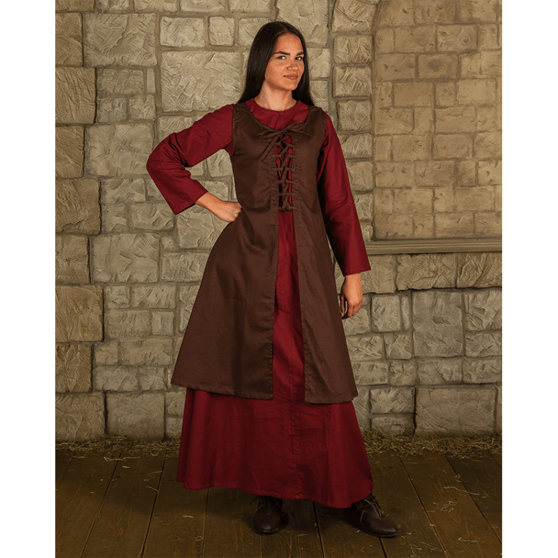Tunika Leandra – bezrękawnik "Leandra" najczęściej noszony jest z suknią spodnią i zapinany za pomocą wiązania z przodu.