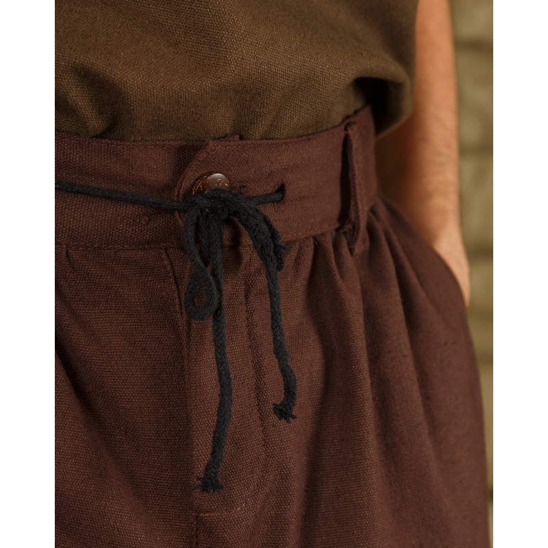 Spodnie Gunnar z płótna – model inspirowany spodniami Rusów lub Wikingów, idealnie pasujący do nordyckich kostiumów.
