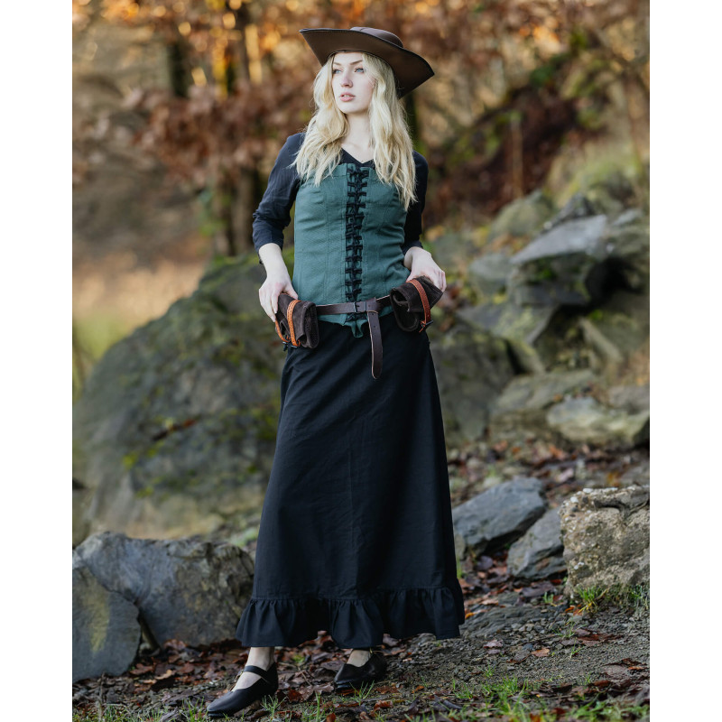 W połączeniu ze spódnicą i dodatkami kamizelka stanie się przyciągającym wzrok elementem stroju karczmarki, awanturnicy czy kupieckiej kobiety, a także dobrą bazą do prostych sukien.