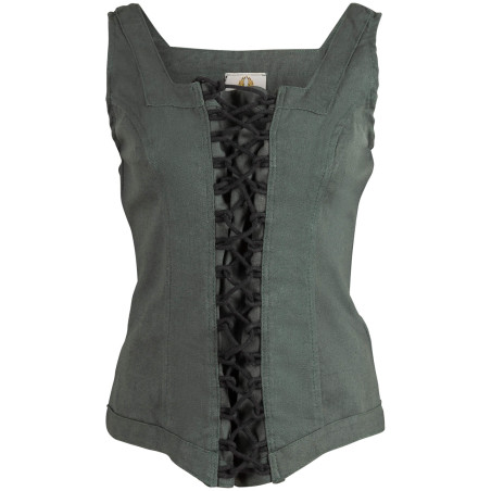 W połączeniu ze spódnicą i dodatkami kamizelka stanie się przyciągającym wzrok elementem stroju karczmarki, awanturnicy czy kupieckiej kobiety, a także dobrą bazą do prostych sukien.