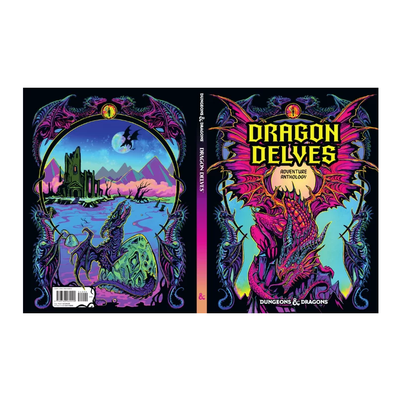 Meet the dragons of D&D in Dragon Delves, a collection of 10 dragon-themed adventures for characters level 1 through 12. Featuring artwork rendered in 10 unique styles, these ready-to-play adventures include streamlined prep and quick start guides for Dungeon Masters. Delve into mysterious dungeons, explore captivating fantasy locations, and come face to face with all the chromatic and metallic dragons, each with unique temperaments, alignments, and magic.