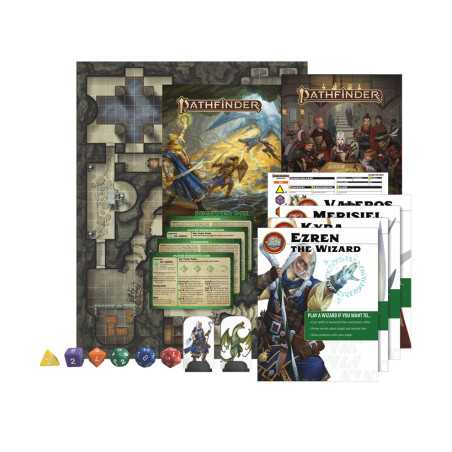 Inside you will find a rich toolbox, filled with everything you need to get started, including rules for character generation, an introductory adventure, guidelines to build your own campaign, character sheets, a full-color map, character pawns, and dice. This deluxe box set is the ideal introduction to the Pathfinder Roleplaying Game, leading the way to a lifetime of adventure!