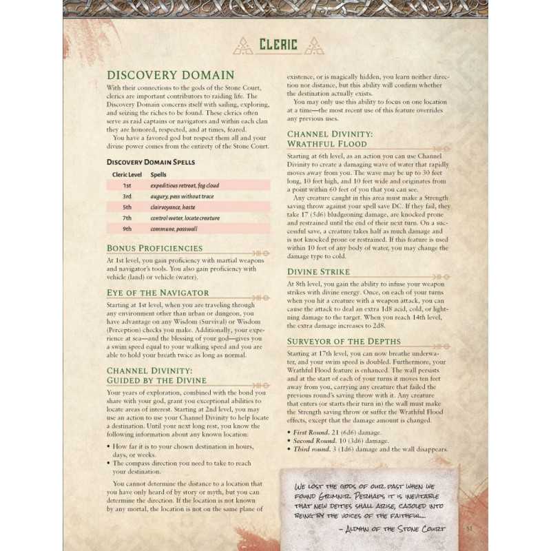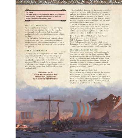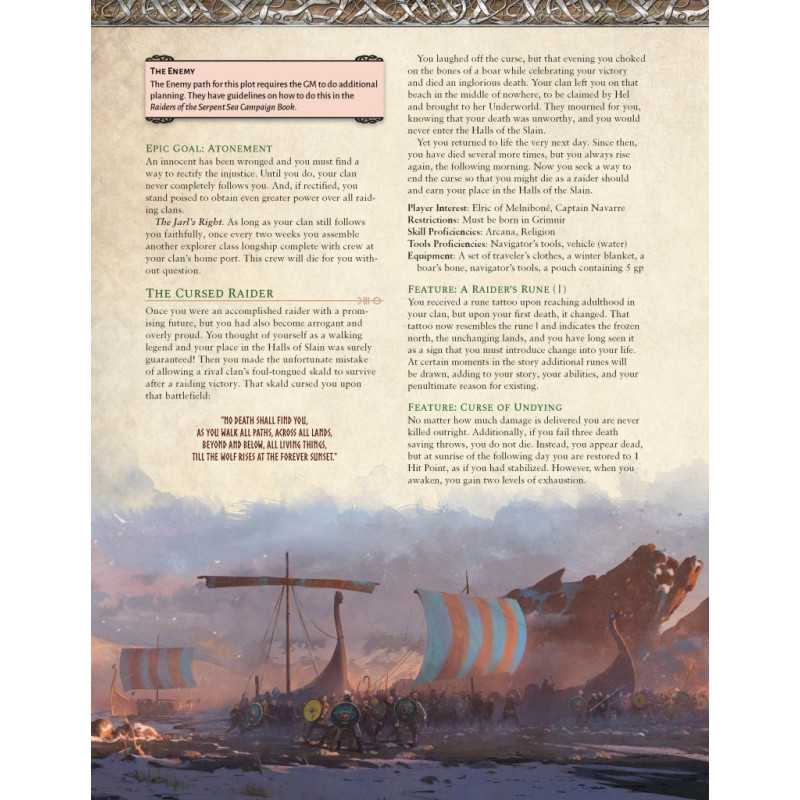 From the lead designer of Dragon Age Origins, in partnership with the creators of Odyssey of the Dragonlords, comes Raiders of the Serpent Sea! Take to the seas of Grimnir and battle against the sinister forces of a forgotten past in an epic campaign for the 5th Edition of the world’s greatest roleplaying game! Raiders of the Serpent Sea is a blend of high fantasy and a darker world of grim seafaring raiders. The world of Grimnir is an unstable and primal realm strongly influenced by Norse mythology and the histories of the Vikings. The raiders of Grimnir fight to survive in this doomed world filled with ancient and fantastic creatures - giants, sea serpents, saber-toothed tigers, and the world-devouring Yoten. Nowhere is safe, danger and glory abound! You must become heroes and embark upon an epic adventure across wild lands and dangerous seas. Though guided by fate, your decisions matter and will drastically influence Grimnir’s future. Will you finally break the cycle of death and devastation that is Ragnarök? Will you become a legend of the Serpent Sea? The Raiders of the Serpent Sea Player's Guide softcover includes over 75 full-colour pages of fantastically illustrated world history, gods, lore, character options, and everything a new raider needs to begin their epic journey.