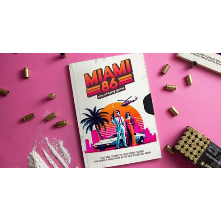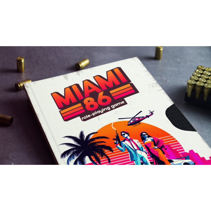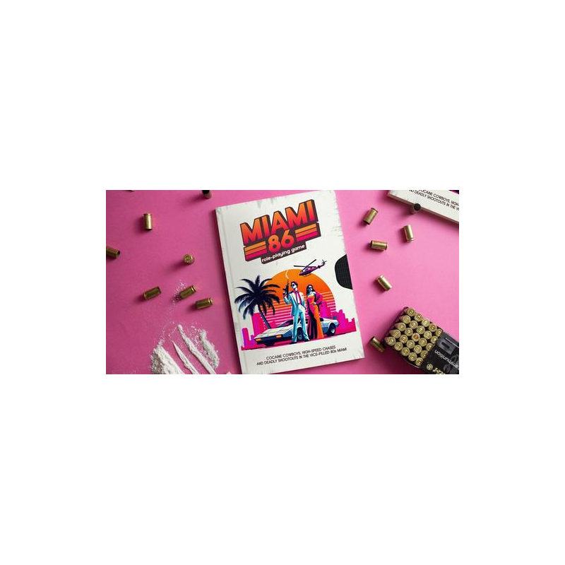 Miami 86 RPG is a rules-light, action-packed role-playing game designed for 2 to 6 players (or more) with solo-play options. Immerse yourself in the quintessential 1980s Miami ambiance, inspired by iconic classics like the film Scarface, the TV series Miami Vice, and the video game Grand Theft Auto: Vice City.