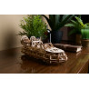 Poduszkowiec ratunkowy od UGEARS to model eleganckiego, dwuśmigłowego poduszkowca przeznaczonego do jazdy w każdym terenie w skali 1:24. Ten model z drewna do samodzielnego montażu jest napędzany silnikiem sprężynowym, z kluczem do nakręcania znajdującym się na spodzie pojazdu.