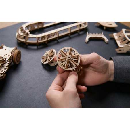 Podobnie do innych modeli Ugears, poduszkowiec ratunkowy wykonany jest z drewna kompozytowego wysokiej jakości. Model można postawić w atrakcyjnym, naturalnym kolorze drewna, albo pomalować go na kolory lokalnej straży pożarnej czy policji. Aby złożyć model, wystarczy wycisnąć laserowo wycięte części z desek i złączyć je ze sobą. Każdy zestaw zawiera kawałek papieru ściernego i wosk—użyj ich, aby wygładzić i nasmarować ruchome części podczas montażu. Postępuj zgodnie z dokładnymi, krok po kroku, w pełni ilustrowanymi instrukcjami w 11 językach (ukraińskim, angielskim, niemieckim, francuskim, polskim, hiszpańskim, portugalskim, włoskim, japońskim, chińskim i koreańskim) dla udanego montażu.
