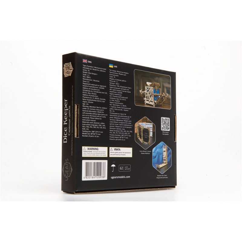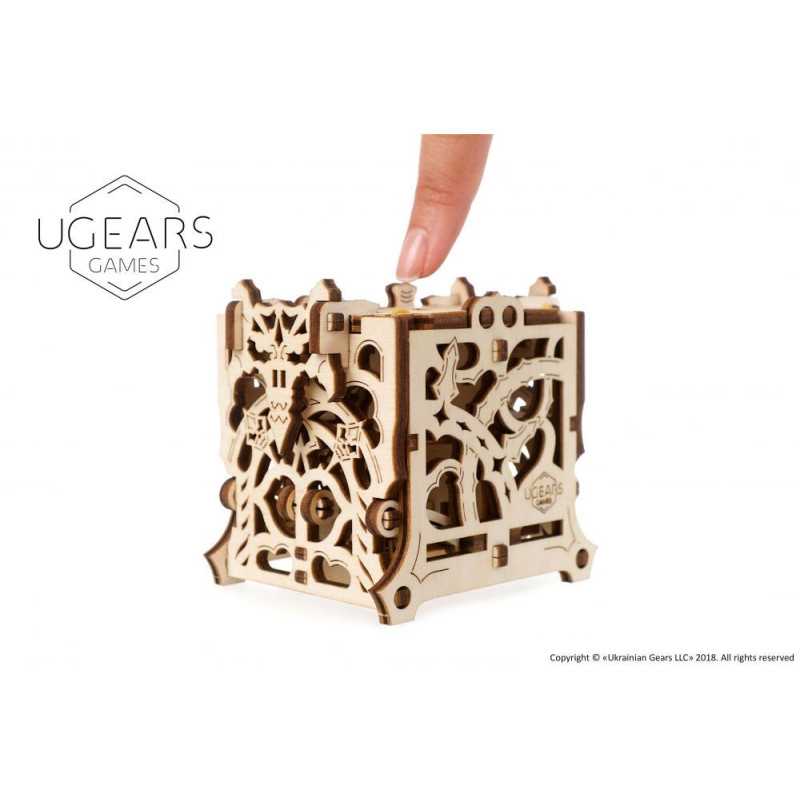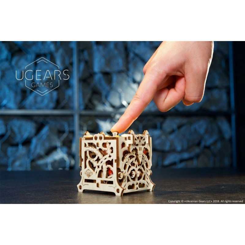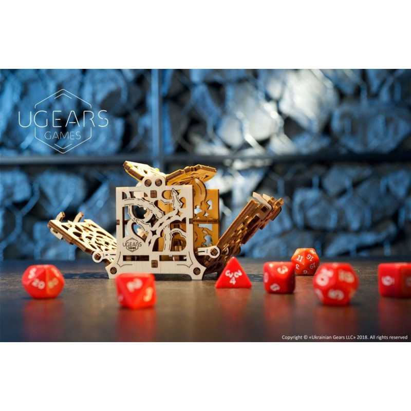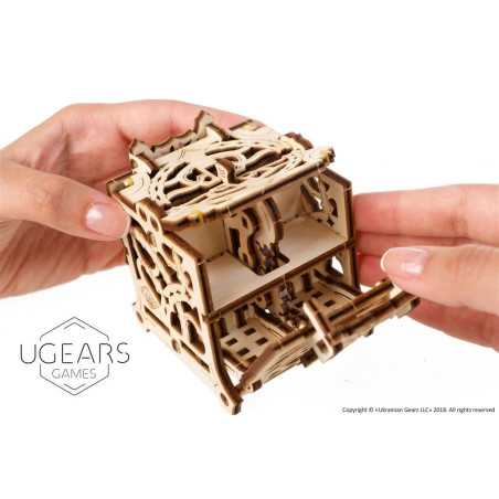 Rozwijając temat gier planszowych w nowej serii Ugears Games, Ugears przedstawia Pudełko na kości. Jeśli zbierasz kości, grasz w gry planszowe i lubisz unikalne mechanizmy, to Pudełko na kości jest dokładnie tym, czego potrzebujesz. Model ten stanie się ulubionym atrybutem w bitwach przy stole i doskonałym uzupełnieniem kolekcji drewnianych puzzli 3D od Ugears.
