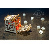 Pudełko na kości to mała rzeźbiona skrzynka wykonana w stylu fantasy. Minimalistyczny mechanizm przesuwny podnosi ściany pudełka, umożliwiając dostęp do jego zawartości. Kompaktowy model w kształcie sześcianu ma 8 przedziałów i pasuje idealnie do standardowego zestawu kości. Każda kostka jest dogodnie umieszczana w oddzielnym przedziale, a podnoszone ściany modelu utrwalają ich pozycję i chronią przed uszkodzeniem czy zgubieniem podczas transportu.