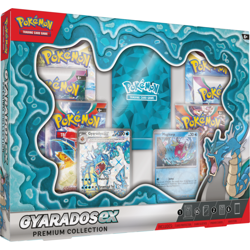 Głęboko pod powierzchnią wody nastąpiła potężna transformacja!Gyarados szturmem wkracza na scenę Pokémon TCG jako dziki Pokémon EX. Wykorzystaj jego moc i pozwól, aby jego wściekłość wylała się na przeciwników. Wykorzystaj plastikowy stojak dla swojej ulubionej karty, tym razem z motywem wodnym. W dodatkowych boosterach szukaj kolejnych kart do kolekcji.