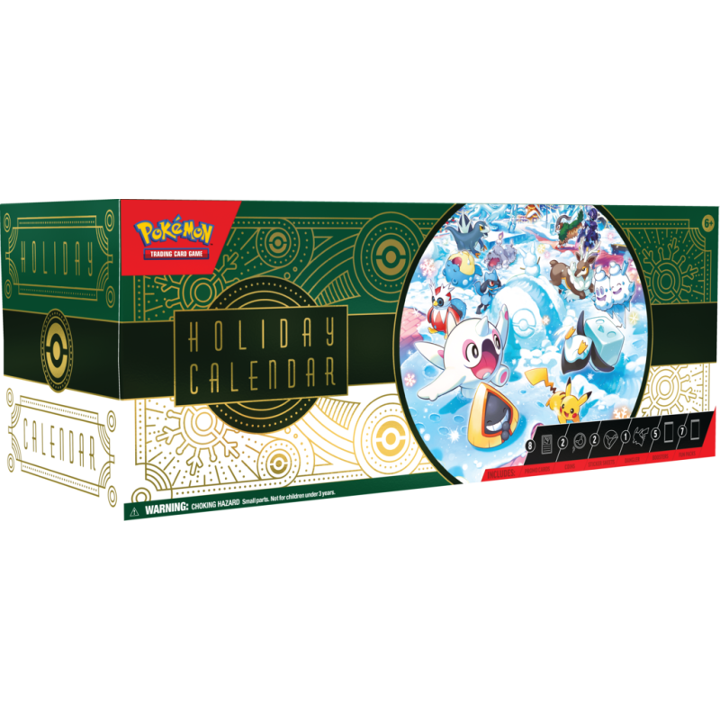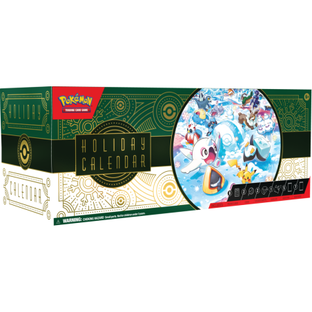 Wczuj się w zimowy, świąteczny nastrój dzięki 25 przeuroczym prezentom! Znajdziesz tutaj świąteczną atmosferę, boostery i inne niezwykłe niespodzianki!   Pokémon TCG: Holiday Calendar to prawdziwa gratka dla kolekcjonerów i pasjonatów niezwykłego świata Pokémonów! Ten zestaw sprawdzi się idealnie jako wyjątkowy prezent, kalendarz adwentowy lub wygodny sposób na powiększenie swojego zbioru gadżetów z sympatycznymi stworkami!