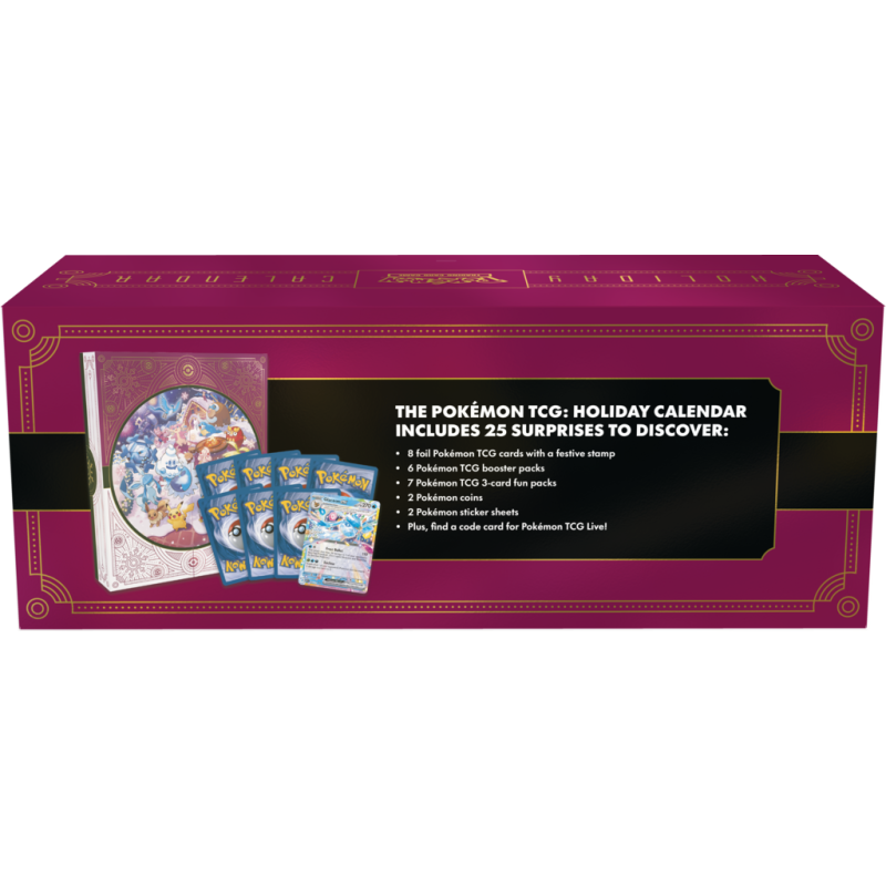 Pokémon TCG: Holiday Calendar to prawdziwa gratka dla kolekcjonerów i pasjonatów niezwykłego świata Pokémonów! Ten zestaw sprawdzi się idealnie jako wyjątkowy prezent, kalendarz adwentowy lub wygodny sposób na powiększenie swojego zbioru gadżetów z sympatycznymi stworkami!