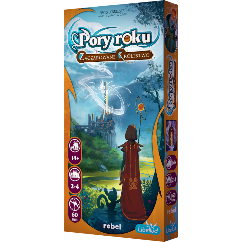 Zaczarowane Królestwo to rozszerzenie do gry Pory Roku. 40 nowych kart Mocy można łączyć ze 100 kartami z gry podstawowej. 10 kart Czarów sprawi, że każda rozgrywka będzie oferowała jeszcze więcej możliwości, a 12 żetonów zdolności specjalnych wyróżni Twojego czarnoksiężnika spośród reszty.