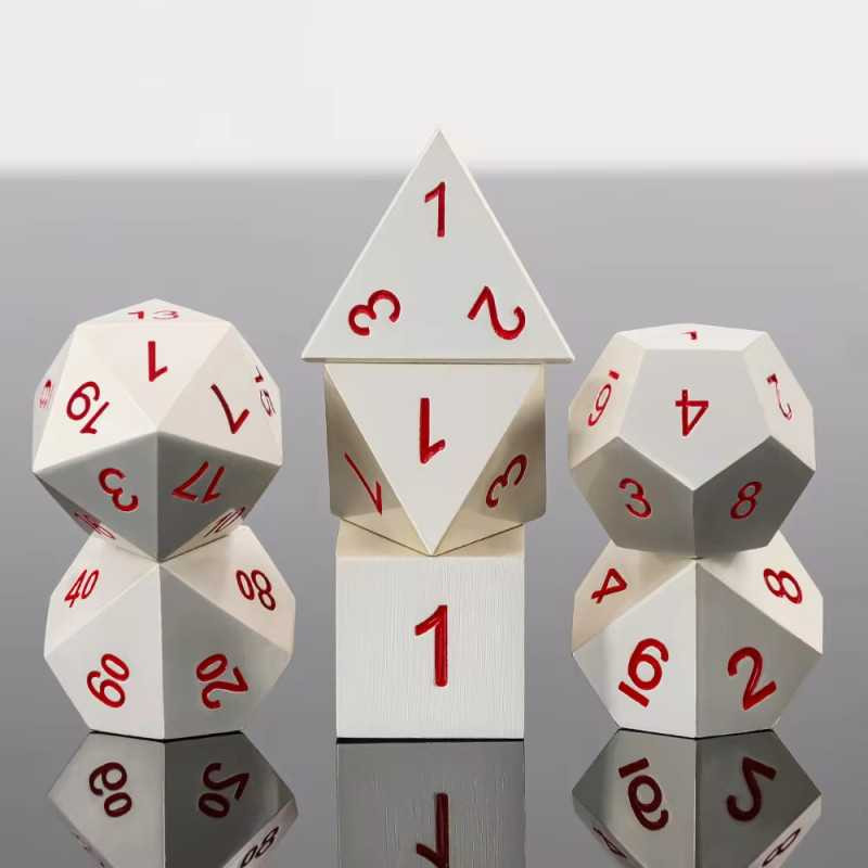 • Zestaw 7 kości wykonanych z metalu. Idealnie nadają się do każdego systemu i dla każdego gracza.