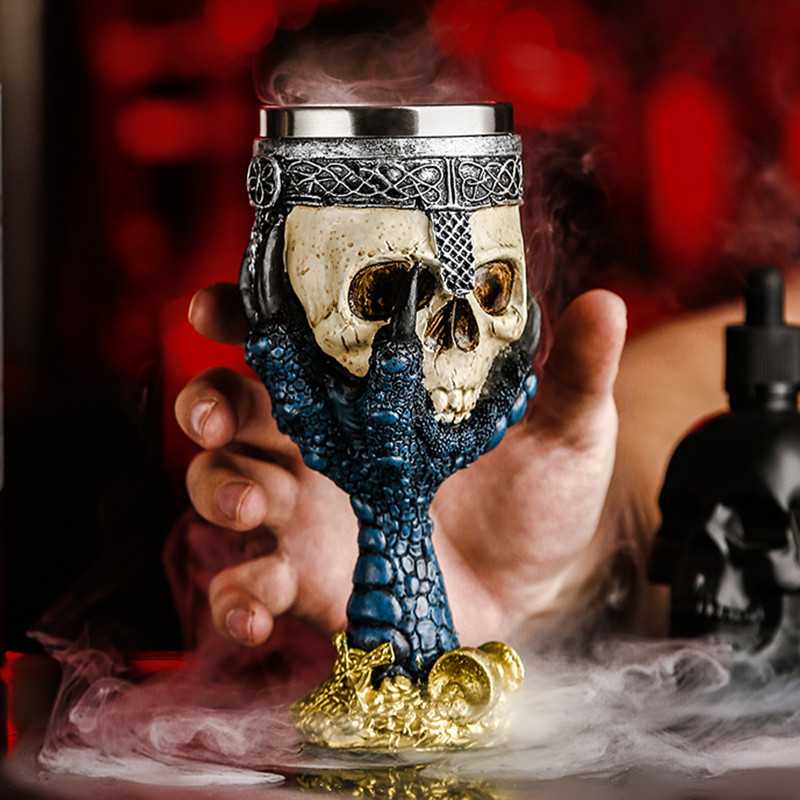 Epicki kielich wykonany z żywicy, z wkładką ze stali nierdzewnej, z pięknymi zdobieniami.