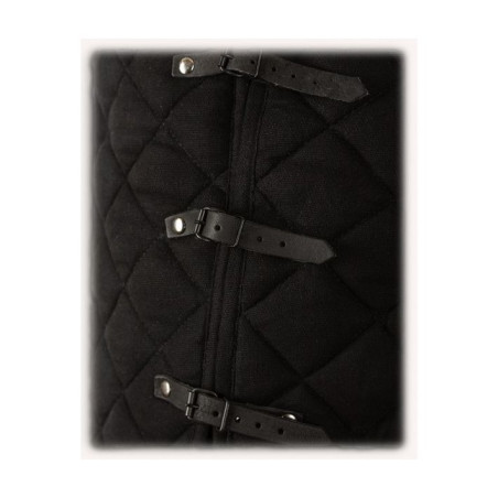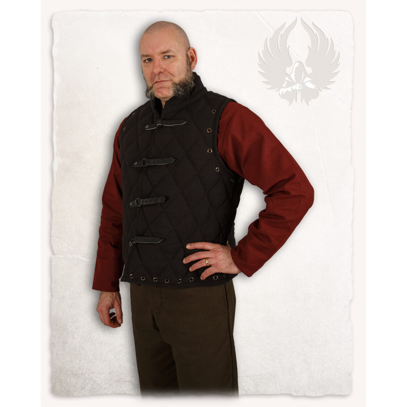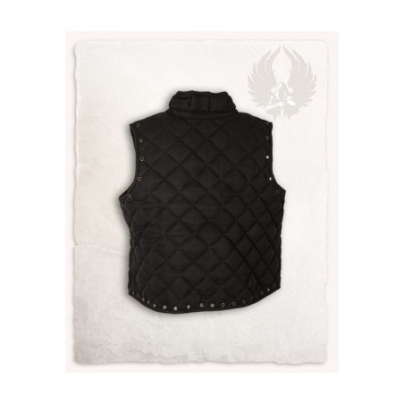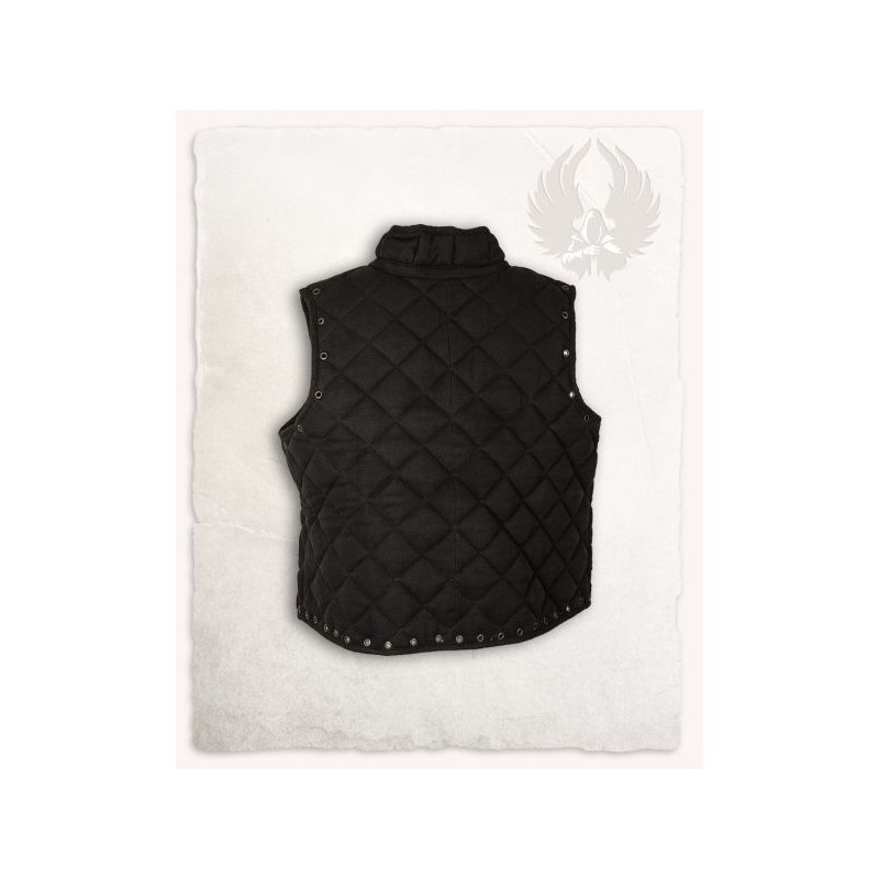 Pikowana kamizelka "Arthur" jest przeszywana w romby i zapinana z przodu na cztery paski z klamrami. Rękawy oraz dół kamizelki są wyposażone w mosiężne oczka, które umożliwiają łatwe przypięcie naręczników i nakolanników. Przeszycie w kształcie rombów zapewnia większą swobodę ruchów, a jednocześnie utrzymuje równomierne rozmieszczenie watowania, chroniąc przed stłuczeniami i otarciami. Kołnierz przeszyty w drobniejsze romby zwiększa komfort noszenia w okolicy szyi.