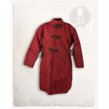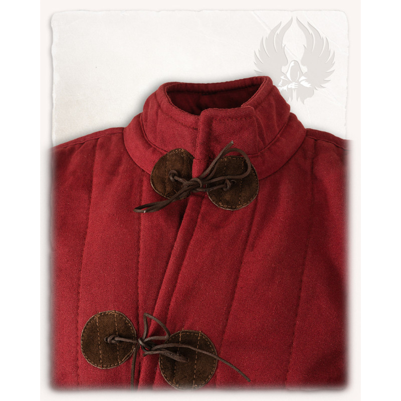 Przeszywanica "Shapur" inspirowana jest orientalnymi strojami. Może być zapinana z przodu za pomocą trzech skórzanych pasków. Co wyróżnia to zapięcie, to diagonalne nakładanie się materiału, podobne do kimona, co nadaje "Shapur" orientalny charakter. Możliwość dopasowania w talii jest szczególnie interesująca dla kobiet. Rozmiar i dopasowanie można indywidualnie regulować za pomocą sznurków po bokach. Przeszywanica ma mocną, łatwą do uchwycenia wyściółkę, nie będąc zbyt grubą. Wyściółka jest cieńsza w okolicach ramion, by nie ograniczać swobody ruchów. Przeszywanica "Shapur" jest wyjątkowa nie tylko ze względu na swój krój, ale również dzięki cienkiej, ale solidnej wyściółce, która sprawia, że prawie szkoda ją ukrywać pod kolejnymi elementami zbroi.