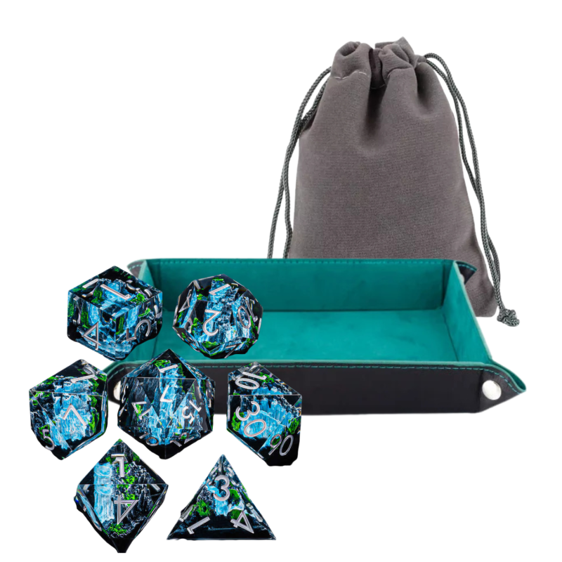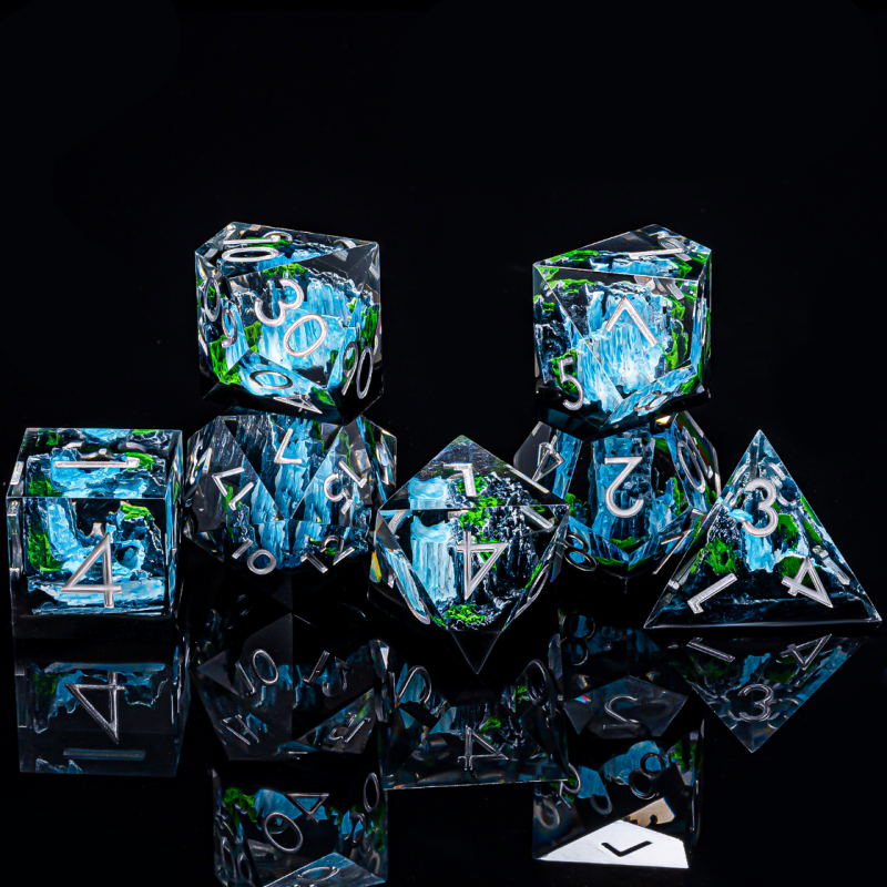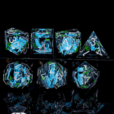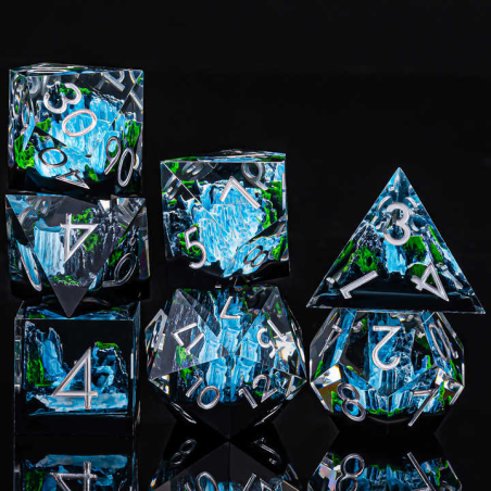 • Zestaw 7 kości wykonanych z żywicy epoksydowej. Idealnie nadają się do każdego systemu i dla każdego gracza.