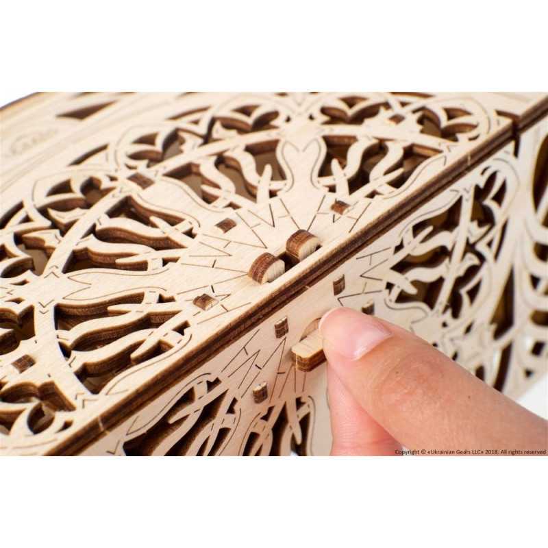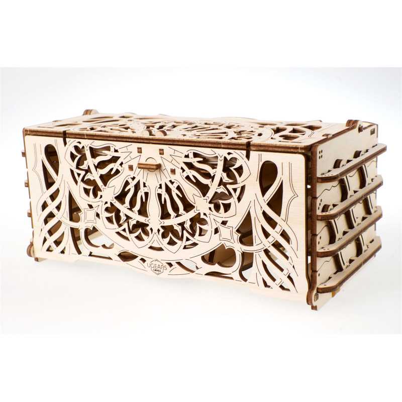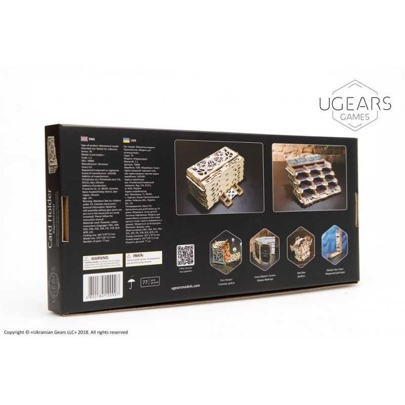 Mądrzy stratedzy, odważni zdobywcy, podróżnicy i inni znawcy ekscytujących przygód ze świata gier karcianych! UGEARS Games zaprasza Cię do nowej podróży, która zapowiada się jeszcze bardziej interesująco dzięki nowemu modelowi mechanicznemu Pudełku na karty. Oryginalny zestaw do składania 3D z kolekcji UGEARS Games został zaprojektowany specjalnie dla graczy gier karcianych. Pudełko na karty pomoże Ci wygodnie sortować karty, zwalniając na stole miejsce dla epickich bitew.
