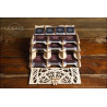Pudełko na karty to nie tylko piękne pudełko z filigranową rzeźbą i niepowtarzalnym ornamentem. Inteligentny mechanizm przesuwny zamienia Pudełko na karty na ergonomiczną czteropoziomową drabinkę, która pozwala łatwo zabrać kartę z dowolnej jej części. W formie rozsuniętej na pokrywie Card Holdera otwierają się cztery dodatkowe sekcje na karty o rozmiarze 45×68 mm.