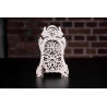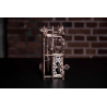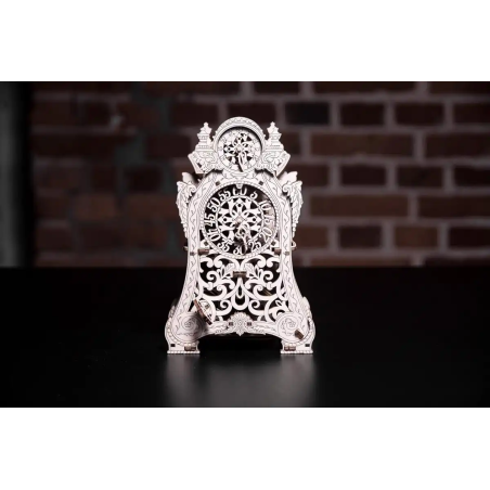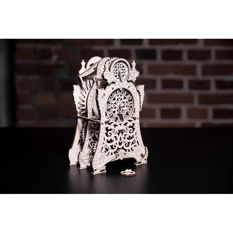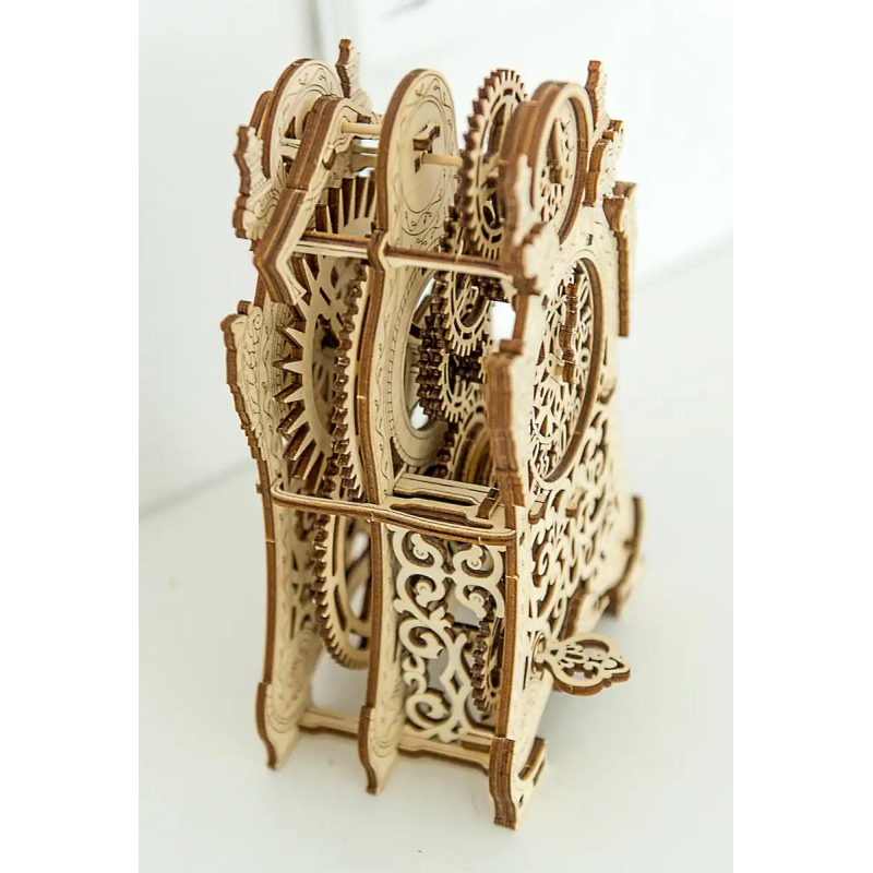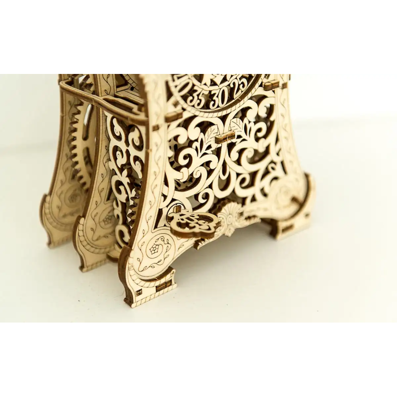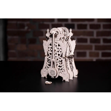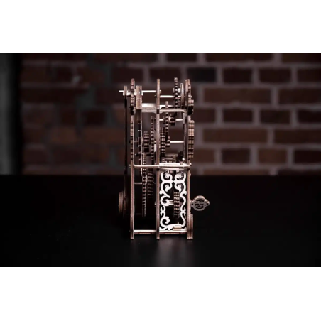 W tej zegarmistrzowskiej przygodzie odkryjesz eleganckie połączenie zębatek, wahadła i wskazówek zegara, wszystko napędzane gumowym silnikiem. Zegar można nakręcać kluczykiem, przypominając tym zegarek z minionych epok, nawiązując do vintWiek estetyki i precyzyjnego inżynierstwa.