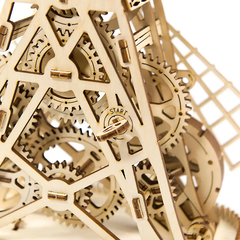 Ten model wiatraka to coś więcej niż prosty zestaw do składania. To interaktywne dzieło z ruchomymi elementami napędzanymi gumowym silnikiem. Łopaty wiatraka obracają się przy obrocie klucza rozruchowego, imitując funkcję prawdziwego wiatraka. Ponadto, model wyposażony jest w dźwignię startową dla łatwej obsługi.