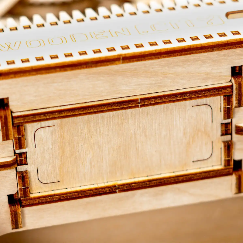 Wykonany z HDF brzozy, model prezentuje rzemiosło najwyższej jakości, zapewniające solidny, trwały i estetycznie przyjemny wygląd. Każdy element doskonale się ze sobą łączy, dając w rezultacie mechaniczny model, który jest równie przyjemny w obsłudze, jak i w montażu.