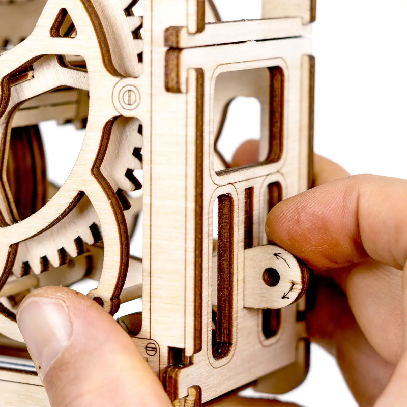 Ten Drewniany Puzzle 3D prowadzi Cię do hipnotyzującego świata Mechanicznego Obrazu. Wykonany z brzozy, ten mechaniczny model zachwyca swoim skomplikowanym wzornictwem i kojącym ruchem kinetycznym. Model ożywa dzięki kluczykowi, ujawniając hipnotyzujący wzór, który zdumiewa i uspokaja.