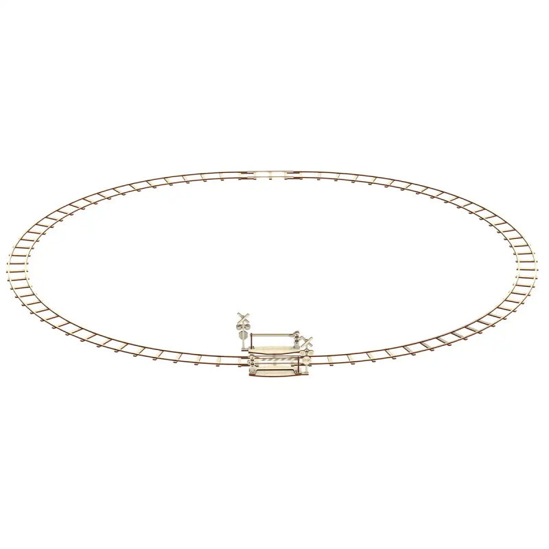 Rozpoczynając podróż z Akcesoriami do Drewnianego Pociągu Puzzle 3D, natychmiast jest się zauroczonym przez Okrągłe Tory + Przejazd. Wykonany starannie z płyty pilśniowej z brzozy, jest doskonałą amalgamacją europejskiej precyzji i pasji.